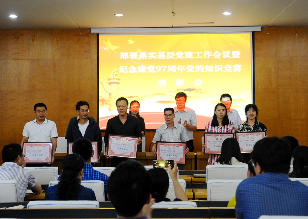 會上,學校黨委對在慶祝建黨97周年黨的知識競賽活動中取得佳績的組織和個人進行了表彰,齊宏偉宣讀了獲得“優秀組織獎”的12個黨委、直屬黨支部名單,張文治宣讀了獲獎的個人名單。