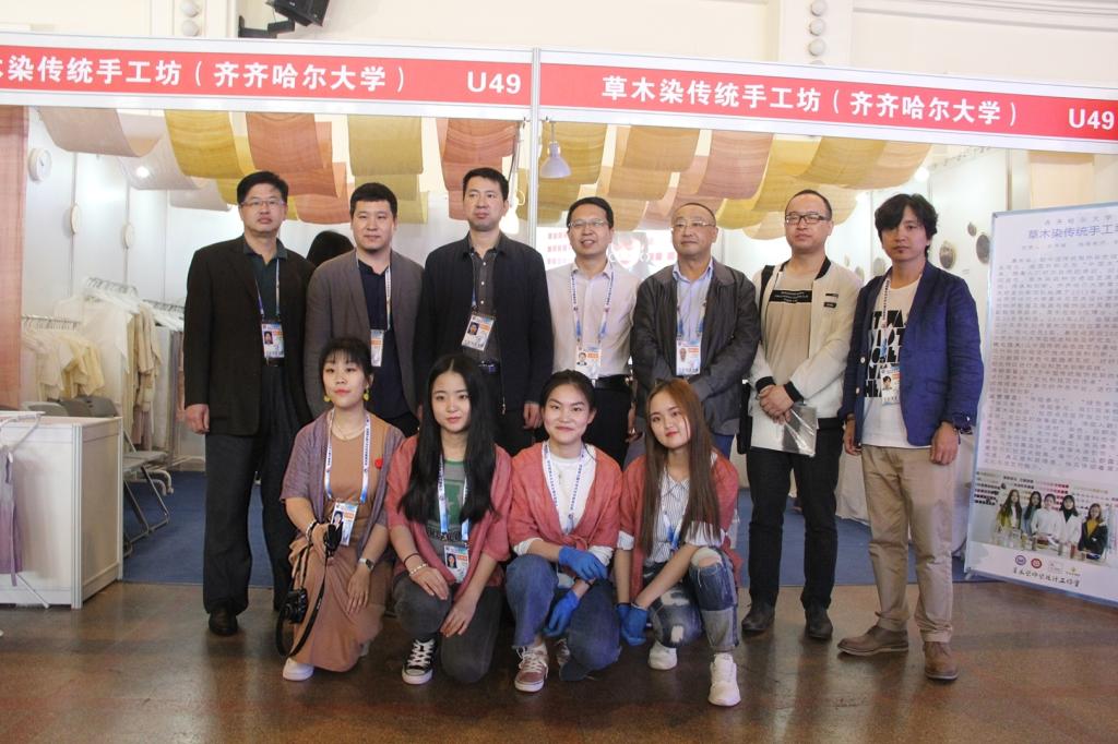 草木染傳統工作坊是在“文化鑄校”科學理念指導下我校大學生研發創新團隊于2012年建立的。該團隊主要由齊齊哈爾大學美術與藝術設計學院副院長范鐵明教授、服裝與服飾設計系趙志軍副教授等組成,團隊多年來以中國傳統染色技藝為基礎,利用現代科技手段進行技術改良和創新。通過建立大數據標準色卡數據庫系統,對紡織品的顏色特征進行大膽的藝術創新實踐。以全產業鏈整合連鎖、生物酶高效生化色素萃取、大數據標準色卡數據庫系統、分子生物學復合改性與表征、傳統技藝現代仿真為創新點,在天然染料方面為消費者提供安全環保的紡織物。通過多年的技藝革新與大量的創新實踐,目前已經形成了成熟的草木染技藝。2017年6月,草木染團隊參加第十五屆“挑戰杯”黑龍江省大學生課外學術科技作品競賽決賽,榮獲一等獎、最具市場潛力獎、最佳人氣作品獎三個獎項。2017年8月,該團隊獲得黑龍江省第五屆大學生藝術展演(藝術工作坊)二等獎。同年5月和8月,草木染研發創新團隊先后參加深圳文博會和第十二屆黑龍江國際文化產業博覽會,并順利與企業簽約進行全產業鏈合作。此次借助大藝展的平臺,我校的草木染傳統手工坊進一步走出黑龍江省,走向了全國,讓更多的人熟悉和喜愛,所有參演師生都充滿欣喜,倍感振奮。而欣喜與振奮之余,通過與全國各參展單位的交流,參演師生有了更多更深的思考,就是在新時代如何將草木染的成果更快更好地與現實生活緊密結合,不斷滿足日益增長的美好生活需要。更新發展理念,開拓審美視野,增長技藝見識,擴大友好交流,此次大藝展使齊齊哈爾大學參展師生收獲頗豐。