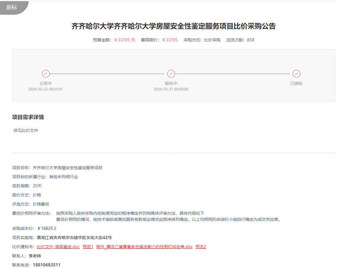 齊齊哈爾大學房屋安全性鑒定服務項目比價采購公告(轉自黑龍江省政府采購網)