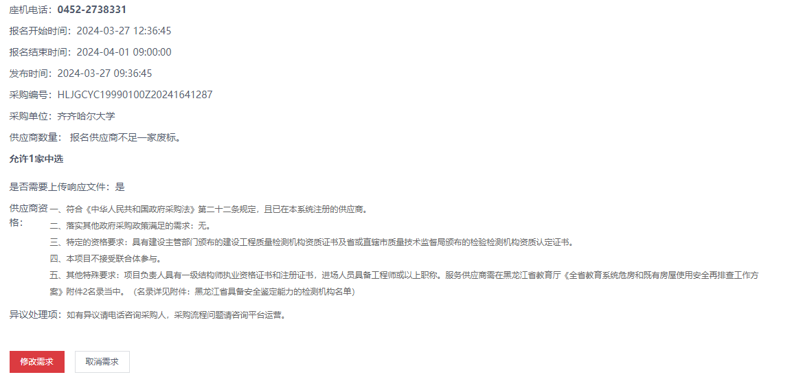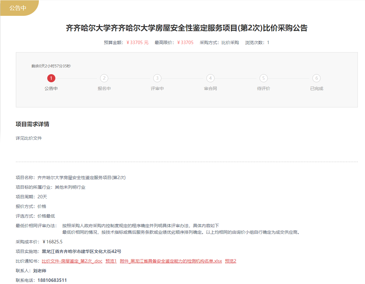 齊齊哈爾大學房屋安全性鑒定服務項目(第2次)比價采購公告(轉自黑龍江省政府采購網)
