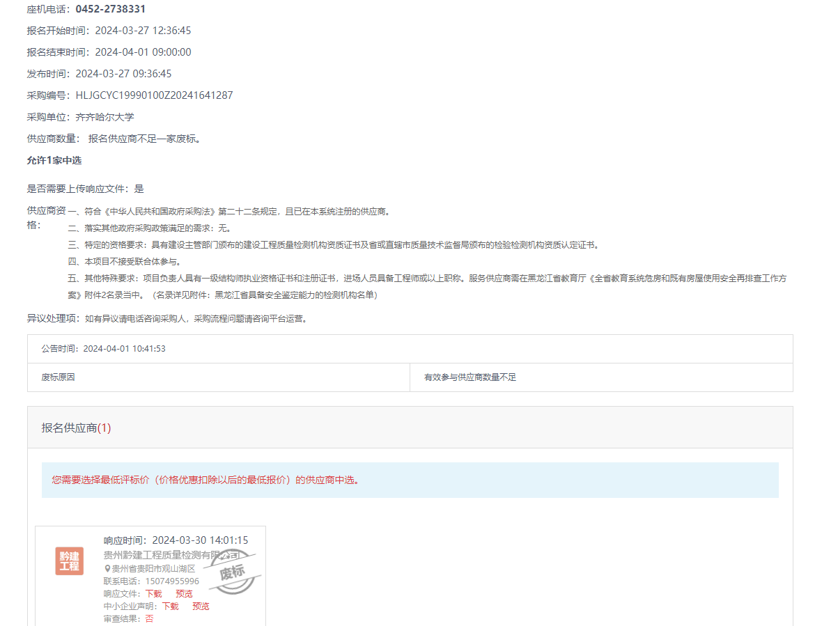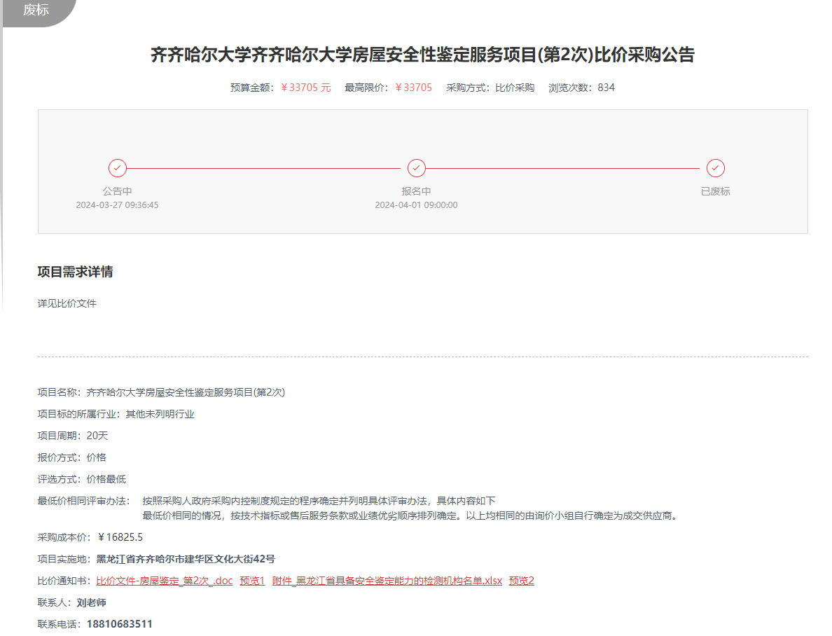 齊齊哈爾大學房屋安全性鑒定服務項目(第2次)比價采購公告(轉自黑龍江省政府采購網)