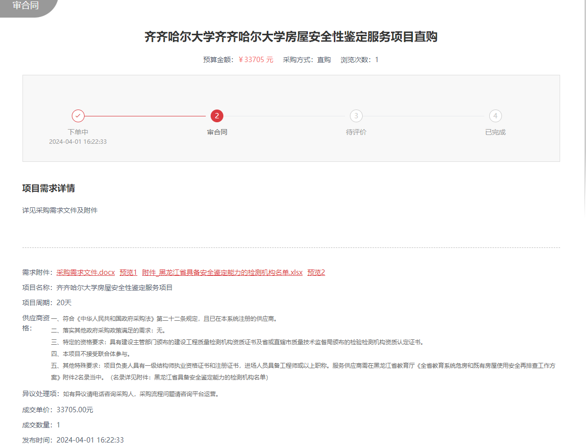 齊齊哈爾大學(xué)房屋安全性鑒定服務(wù)項(xiàng)目直購(gòu)(轉(zhuǎn)自黑龍江省政府采購(gòu)網(wǎng))