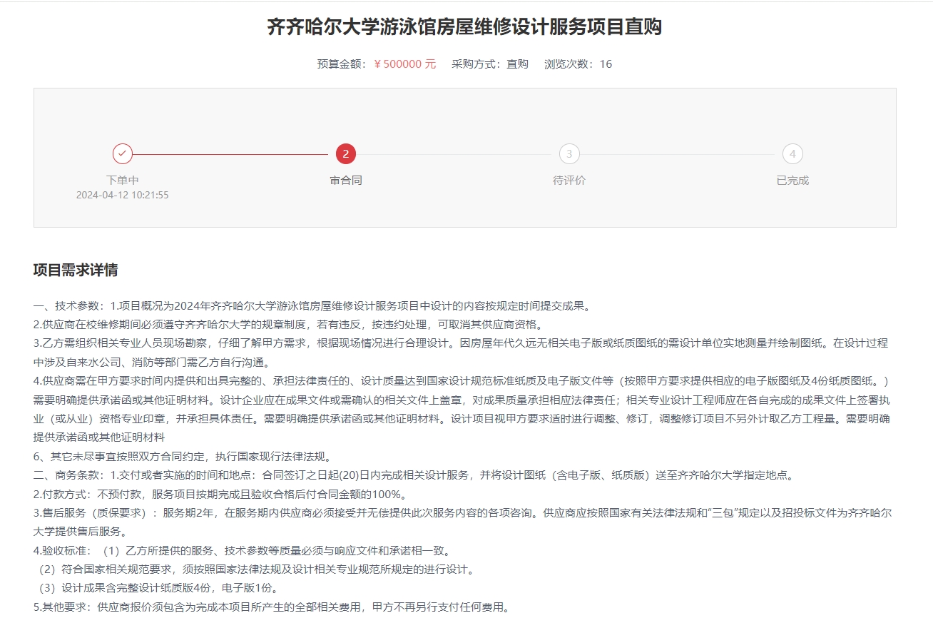 齊齊哈爾大學游泳館房屋維修設計服務項目直購(轉自黑龍江省政府采購網)