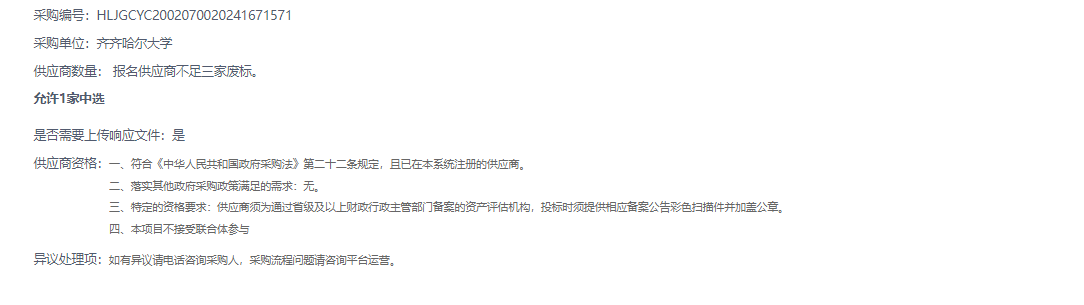 上一條:齊齊哈爾大學材料科學與工程學院實驗耗材(雜品類)及實驗化學試劑采購項目(包1)中標公告(轉自中國政府采購網)
