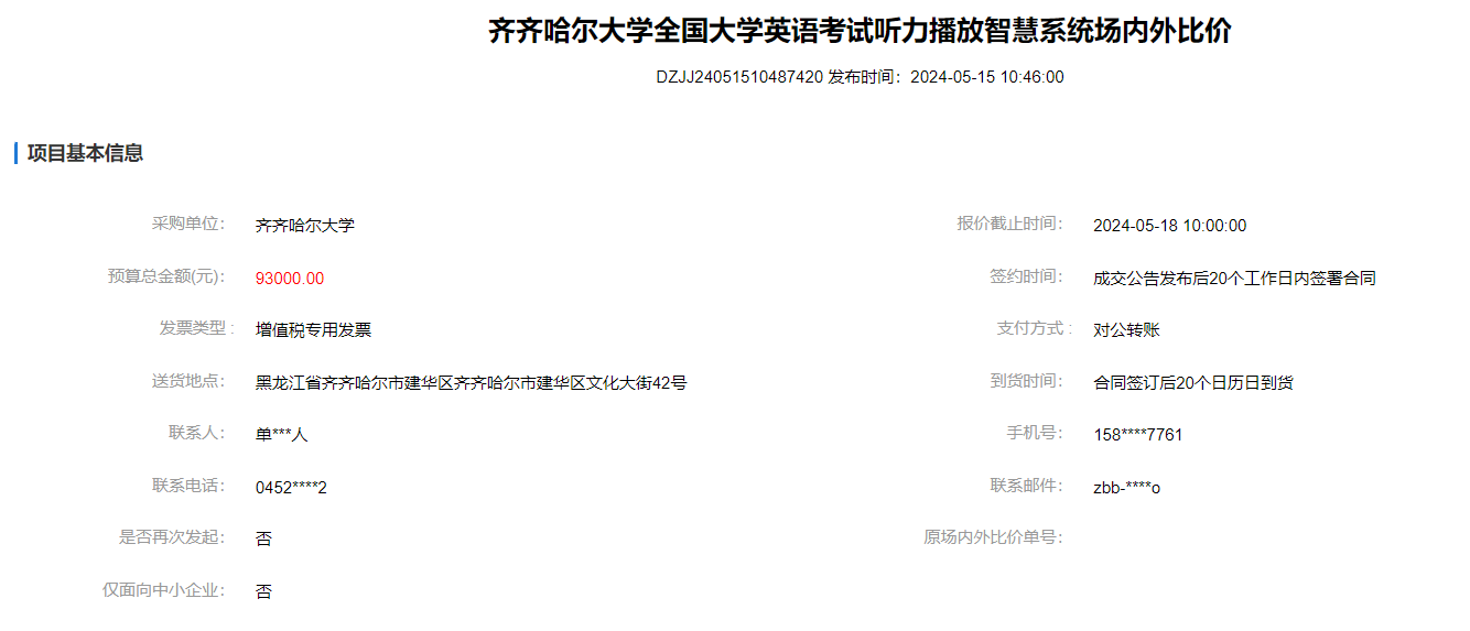 上一條:齊齊哈爾大學全國大學英語考試聽力播放智慧系統場內外比價(廢標)(轉自黑龍江省政府采購網)