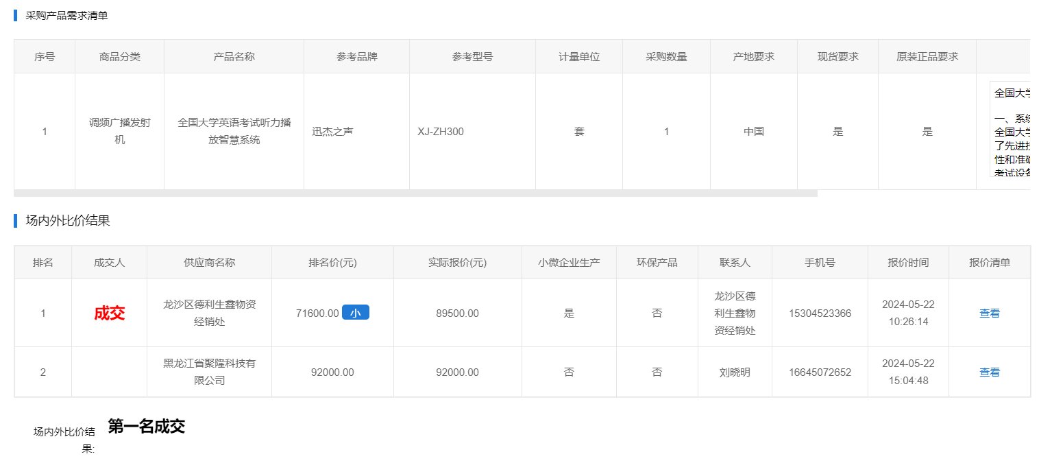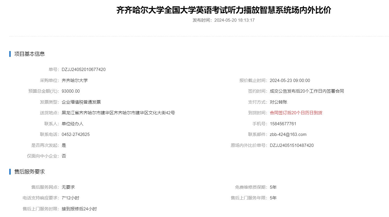 齊齊哈爾大學全國大學英語考試聽力播放智慧系統場內外比價(轉自黑龍江省政府采購網)