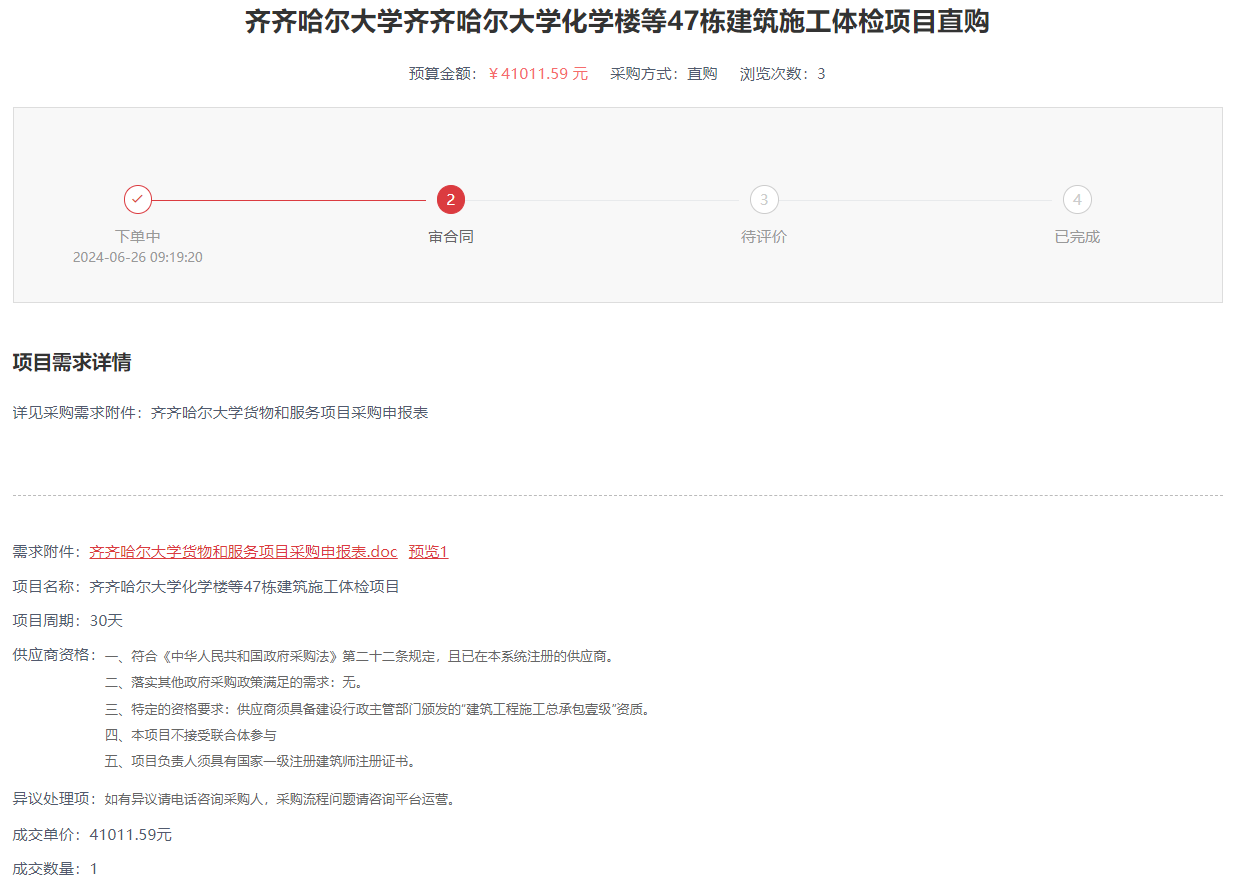 齊齊哈爾大學化學樓等47棟建筑施工體檢項目直購(轉自黑龍江省政府采購網)