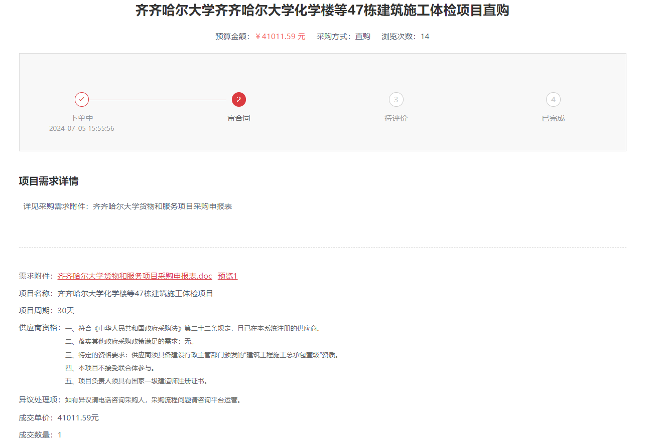 齊齊哈爾大學化學樓等47棟建筑施工體檢項目直購(轉自黑龍江省政府采購網)