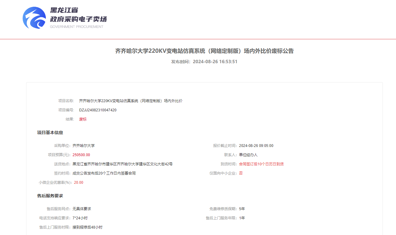 上一條:齊齊哈爾大學220KV變電站仿真系統(tǒng)(網(wǎng)絡定制版)場內(nèi)外比價需求公告(二次)(轉(zhuǎn)自黑龍江省政府采購網(wǎng))