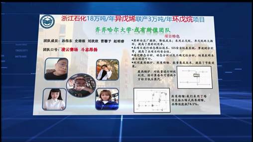 在大學領導、相關部門與學院的大力支持下,經過5個多月的艱苦奮戰和堅持不懈的努力,我校“戊有所值”設計團隊,完成了包括可行性分析、工藝設計、廠區布置、設備選型、自控設計、經濟核算、工程制圖等近20余項子項目在內的參賽作品“浙江石化18萬噸/年異戊烯聯產3萬噸/年環戊烷項目”。最終,經過黑龍江省賽、東北賽區初賽和決賽,該設計團隊成功晉級全國總決賽,以優秀的設計作品和精彩的現場答辯,一路過關斬將奪得全國一等獎。