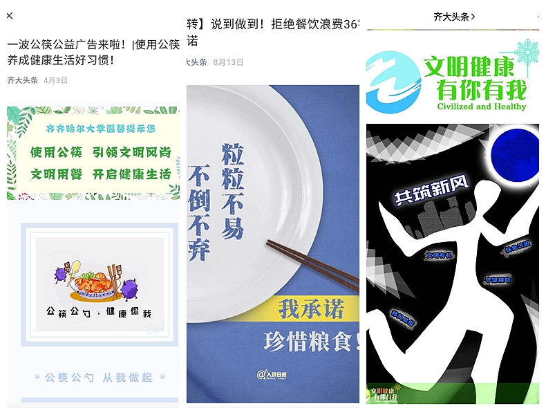 文明校園樹新風,節儉教育結碩果。在全省“文明健康 有你有我”公益廣告優秀作品征集活動中,我校24項作品入選并被省文明辦“文明龍江”公眾號宣傳推廣;9月1日,省文明辦“厲行節約、文明用餐”系列優秀公益廣告宣傳展播,再次推廣了我校的3件優秀入選作品。