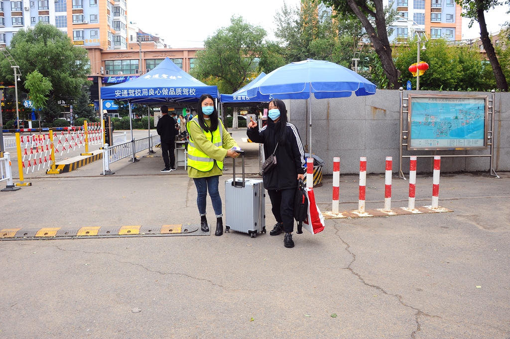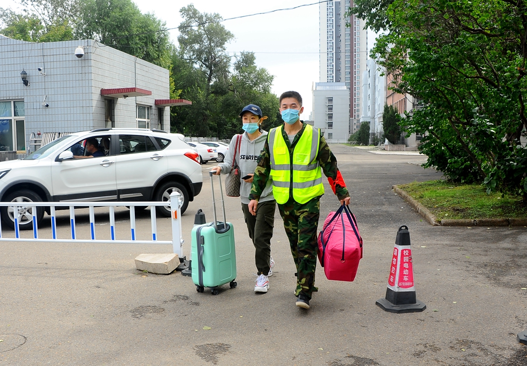 5日早上,首批返校學生志愿者們從7:30開始全部進入工作狀態,在每個學院的接待點都能看到他們忙碌的身影。其中,由退役大學生士兵們組成的志愿服務隊伍統一身穿“綠馬甲”,有序地開展志愿服務工作,及時做好第二批返校報到同學的掃碼測溫、方向指引、行李搬運和溝通協調等工作,“綠馬甲”們忙碌的身影穿梭在中區西門和東區北門兩個入口,成為我校第二批返校同學報到期間校園中的一道亮麗的風景線。