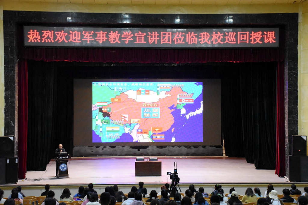 為貫徹落實教育部國防教育辦公室、全軍學生軍訓工作辦公室《2020年學生軍事訓練工作要點》精神,彌補學生軍訓軍事理論教學師資力量不足,促進軍事教學均衡充分發展,10月28日下午,我校邀請黑龍江省教育廳、省軍區戰備建設局軍事教學宣講團成員哈爾濱工程大學李彥濤老師為2020級全體學生進行了軍事理論授課。授課活動通過線上、線下相結合的方式進行,2020級部分同學在文化宮現場聆聽了課程,其他同學在教室和寢室通過觀看線上視頻直播的方式觀看了課程。活動由武裝部副部長劉增發主持。