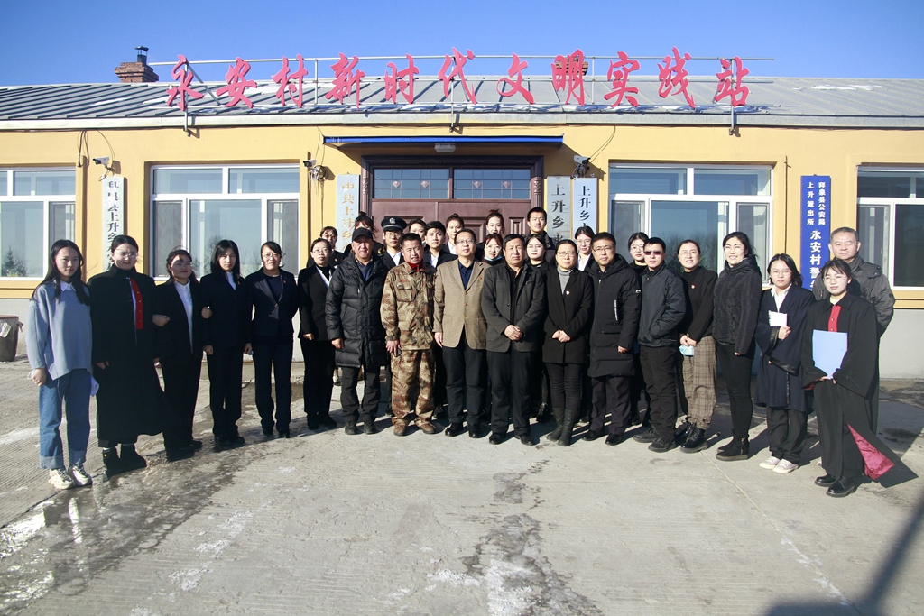為深入學習貫徹習近平法治思想,深化新時代文明實踐中心共建共育,落實《關于印發<齊齊哈爾大學與拜泉縣新時代文明實踐中心、拜泉縣上升鄉永安村新時代文明實踐站結對共建方案>的通知》(齊大辦(黨)字〔2020〕6號)的文件精神,在第七個“國家憲法日”即將到來之際,11月28日,哲學與法學學院黨委書記于春梅,校黨委宣傳部副部長何強,哲學與法學學院副書記張樹啟,帶領哲學與法學學院30余名師生,前往拜泉縣上升鄉永安村開展習近平法治思想宣傳、法律援助等活動,大力弘揚憲法精神。