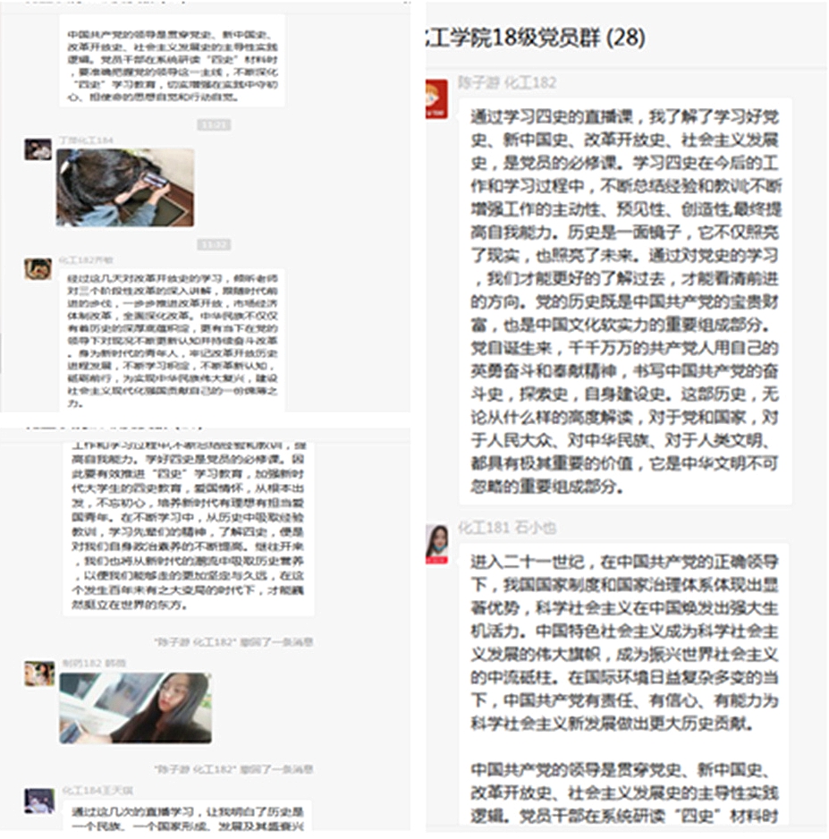 我校師生積極收聽收看了“四史學習教育·微領學”網絡直播課堂,大家紛紛表示,通過本次網絡直播課的學習,深刻理解認識到了“四史”學習的重要意義,在今后的學習和工作中會以史為鑒、砥礪前行,不忘初心、牢記使命,不斷增強對共產黨執政規律、社會主義建設規律、人類社會發展規律的認識和把握,切實補足精神之鈣、把穩思想之舵,堅定對馬克思主義一以貫之的信仰,對中國特色社會主義矢志不渝的信念,對實現中華民族偉大復興堅定不移的信心,時刻明確努力前進的方向,謹記實現中華民族偉大復興中國夢的歷史使命,承擔起黨和人民賦予的歷史重任,以實際行動迎接建黨100周年。