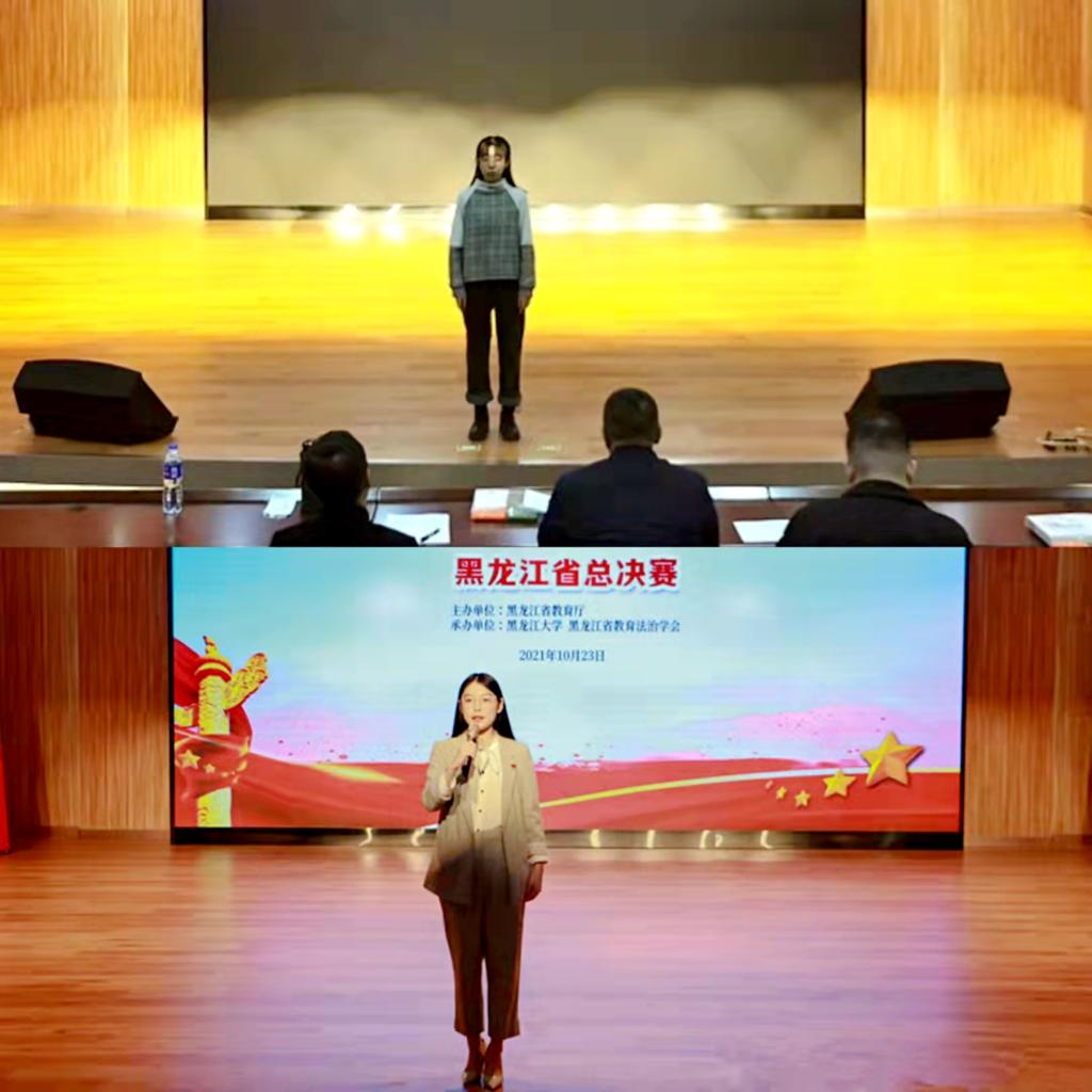 致知力行,踵事增華。為促進全校師生知憲法于心,守憲法于行,校團委多年堅持把憲法學習宣傳作為一項重要政治任務常抓不懈,按照省教育廳《關于組織參加第六屆全國學生“學憲法講憲法”活動的通知》要求,精心組織學憲法、講憲法演講比賽,引導學生把憲法學習宣傳和身體力行結合起來,在校園中形成知行合一的良好氛圍。9月1日至9月30日,校團委通過線上和線下相結合的方式,組織開展了“學憲法 講憲法”知識競賽和演講比賽系列活動。經(jīng)過遴選,我校推薦兩位在校內比賽中脫穎而出的哲學與法學學院的齊旗同學、外國語學院徐嘉同學赴哈爾濱市參加全省決賽。決賽于10月23—24日在黑龍江大學舉行,大學組全省共有54名選手參加。經(jīng)過激烈角逐,齊旗同學榮獲知識競賽高校組“二等獎”,徐嘉同學榮獲演講比賽高校組“三等獎”。