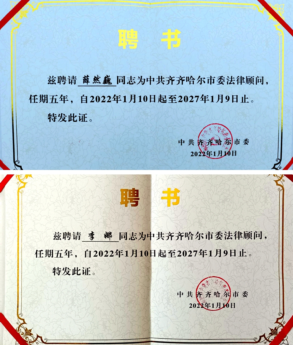 我校兩名教師受聘為中共齊齊哈爾市委法律顧問