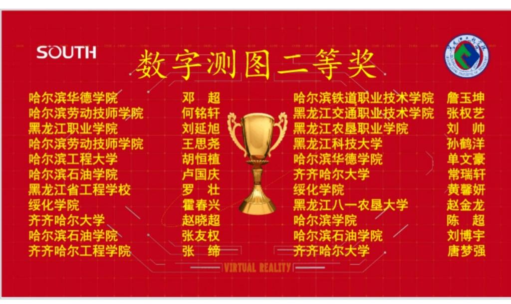 6月18-19日,“南方測繪杯”第三屆黑龍江省大學生虛擬仿真測繪技能大賽決賽圓滿結束,經過認真備賽和激烈比拼,在鄧琳、屈恩相和劉爽三位老師指導下,我校建筑與土木工程學院趙曉超、常瑞軒、唐夢強等三名同學獲得了“數字測圖”二等獎,成思維同學獲得“二等水準”二等獎,我校代表隊榮獲了“團體二等獎”。