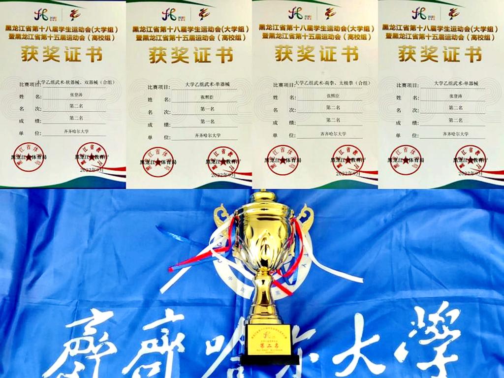 8月19日-21日,由黑龍江省教育廳與黑龍江省體育局聯合主辦的黑龍江省第十八屆學生運動會大學生武術項目的比賽在牡丹江師范學院舉行。我校武術隊首次參賽,并以一金三銀的好成績榮獲乙組(體育院校專業組)團體總分第二名。