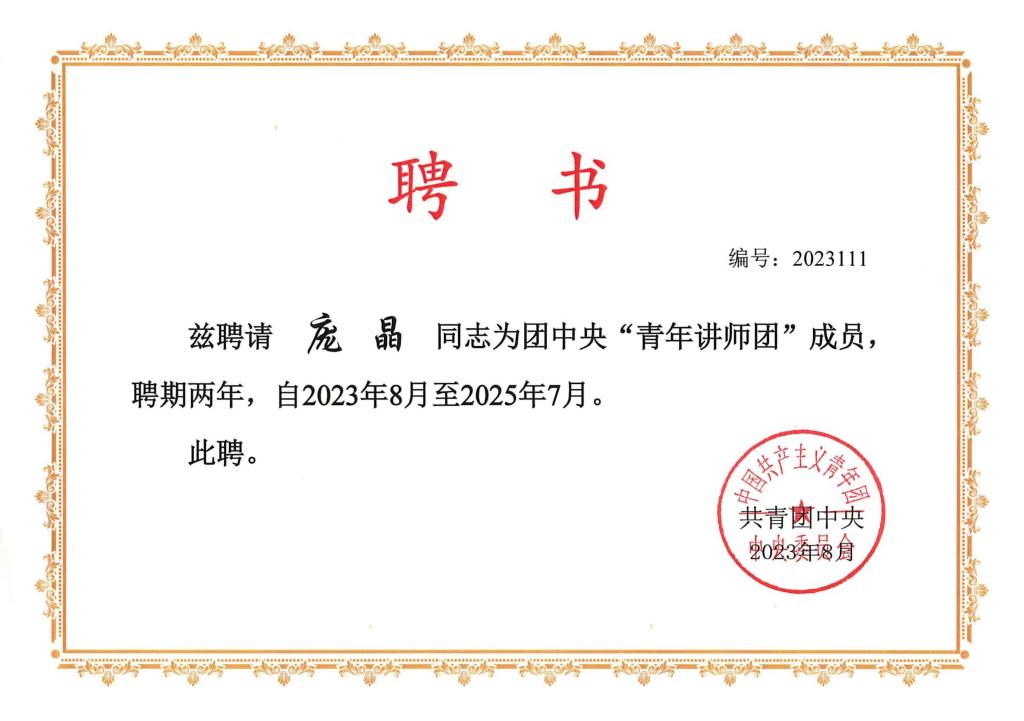 喜報!我校龐晶教授獲聘第二批團中央“青年講師團”講師
