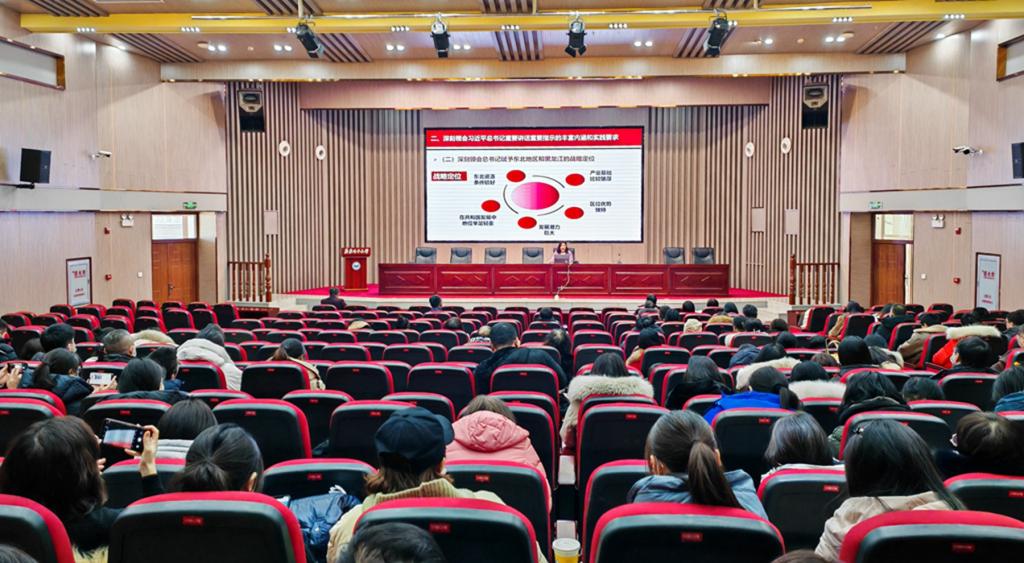 學習有“精度”,讓宣講方式“活起來”。為深入推進學習習近平總書記視察我省期間的重要講話重要指示精神走深走實,全面領會習近平總書記重要講話重要指示精神的精髓要義,學校各基層黨委、直屬黨支部在學深悟透上精準發力,積極組織黨員干部和師生員工以黨委理論學習中心組專題學習、專題讀書班、教職工政治理論學習、黨支部“三會一課”等形式對習近平總書記視察我省期間的重要講話重要指示精神進行了系統學習,在逐字逐句悟中筑牢了理論學習根基。學校黨委宣傳部按照校黨委文件組建了習近平總書記視察我省期間重要講話重要指示精神專家宣講團,張永軍、徐鳳江、吳丹、趙越、劉媛媛、劉越男等多位專家學者先后在全校范圍內開展了12場專題宣講,宣講報告思想深刻、生動透徹、點面結合、深入淺出,貼近學校發展實際,對凝心聚力推動高水平大學建設具有很強的針對性、前瞻性和實踐性,讓全校教職員工倍受鼓舞、收獲頗豐;校團委組織“青年學生黨的創新理論宣講團”在全校團員和青年中開展了3場習近平總書記重要講話重要指示精神及省委十三屆四次全會精神主題宣講,青年學生用“青言青語”表達了堅定不移聽黨話跟黨走、為強國建設民族復興偉業挺膺擔當的豪情壯志,讓思想的光芒照亮成長成才之路;為深化新時代文明實踐中心共建共創,推動習近平總書記重要講話重要指示精神家喻戶曉、深入人心,齊齊哈爾大學駐永安村第一書記、工作隊隊長劉忠雙為全村部分黨員和群眾代表開展了學習貫徹習近平總書記視察黑龍江重要講話重要指示精神宣講,讓習近平總書記的親切關懷、殷切期望直抵百姓心底,讓基層群眾真正感受到黨的溫暖。