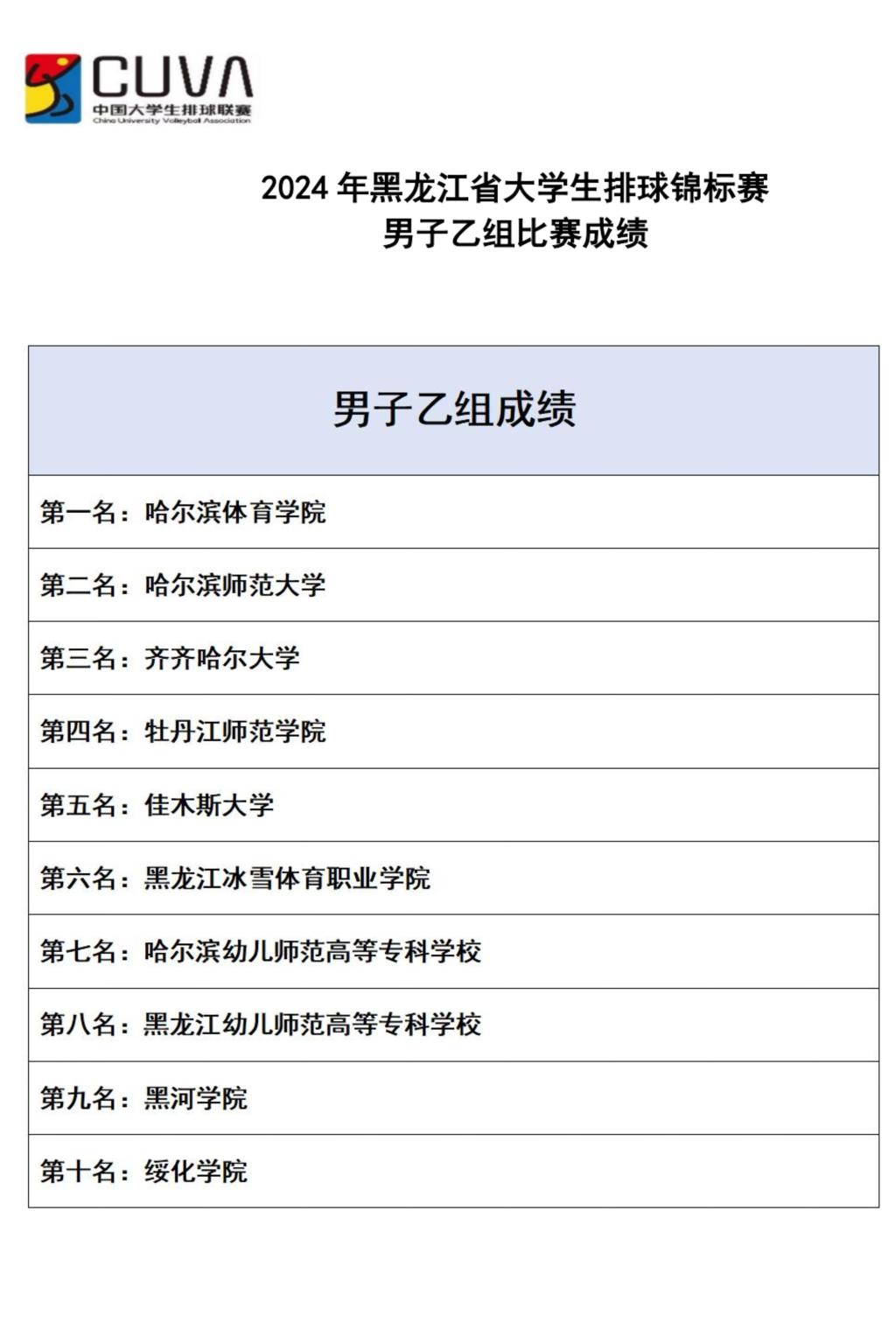 為進(jìn)一步推動(dòng)我省高校排球運(yùn)動(dòng),不斷提高大學(xué)生排球運(yùn)動(dòng)水平,黑龍江省學(xué)生體育協(xié)會(huì)于10月25日至31日在哈爾濱石油學(xué)院舉辦了2024年黑龍江省大學(xué)生排球錦標(biāo)賽,全省共34所高校的55支隊(duì)伍參加了本次比賽。我校代表隊(duì)在本次比賽中獲得男子季軍和女子第四名的佳績。