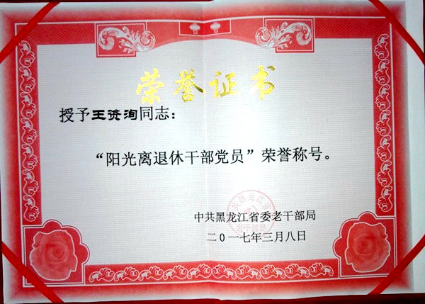3月31日,全省老干部局長(zhǎng)會(huì)議在哈爾濱召開(kāi),中共黑龍江省委老干部局對(duì)全省離退休干部黨員進(jìn)行了表彰,共有103人獲得“陽(yáng)光離退休干部黨員”榮譽(yù)稱(chēng)號(hào),我校退休老黨員王資洵、甄長(zhǎng)榮獲此殊榮。