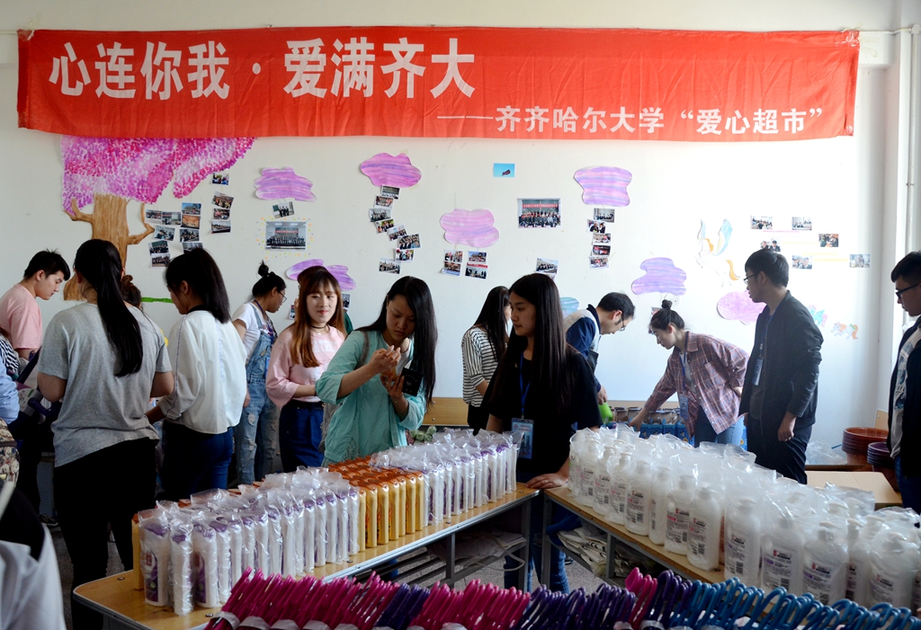 齊齊哈爾大學“愛心超市”是一種“以捐助為主渠道,以超市運作為載體”的長期公益性活動,愛心超市由校勤工助學服務中心負責日常管理。通過愛心超市將全校師生和社會各界愛心人士捐贈的衣物及文體、生活用品免費發放給我校家庭經濟困難學生,緩解這些學生的經濟壓力。自2013年學校成立“愛心超市”以來,它已經陪伴同學們走到了第五個年頭,受惠的同學數以萬計,“愛心超市”的知名度也越來越高,得到社會各界和全校師生的廣泛贊譽。
