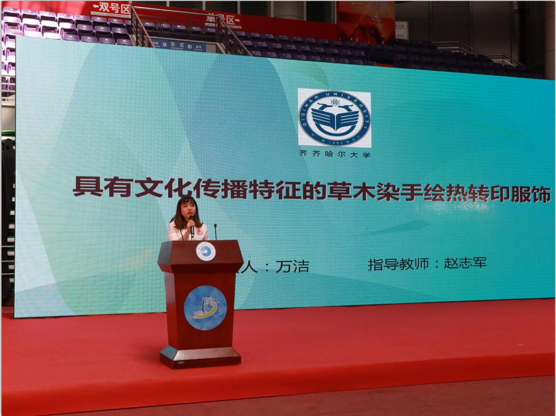 經過校內遴選,我校共推薦作品93件,參與人數1000余人,有15項作品進入終審決賽。其中,哲學與法學學院崔建偉老師指導的陳葉等同學的《高校寢室冷暴力的調查研究——基于黑龍江省部分高校的實證調查》等2項作品獲得一等獎;通信與電子工程學院苗鳳娟老師指導的周青等同學的《開放實驗室管理系統》等7項作品獲得二等獎;食品與生物工程學院郭成宇老師指導的倪新宇等同學的《小米營養酒的研究》等6項作品獲得三等獎。美術與藝術設計學院趙志軍老師指導的萬潔等同學的《具有文化傳播特征的草木染手繪熱轉印服飾》同時獲得一等獎、最具市場潛力獎、最佳人氣作品獎三個獎項。