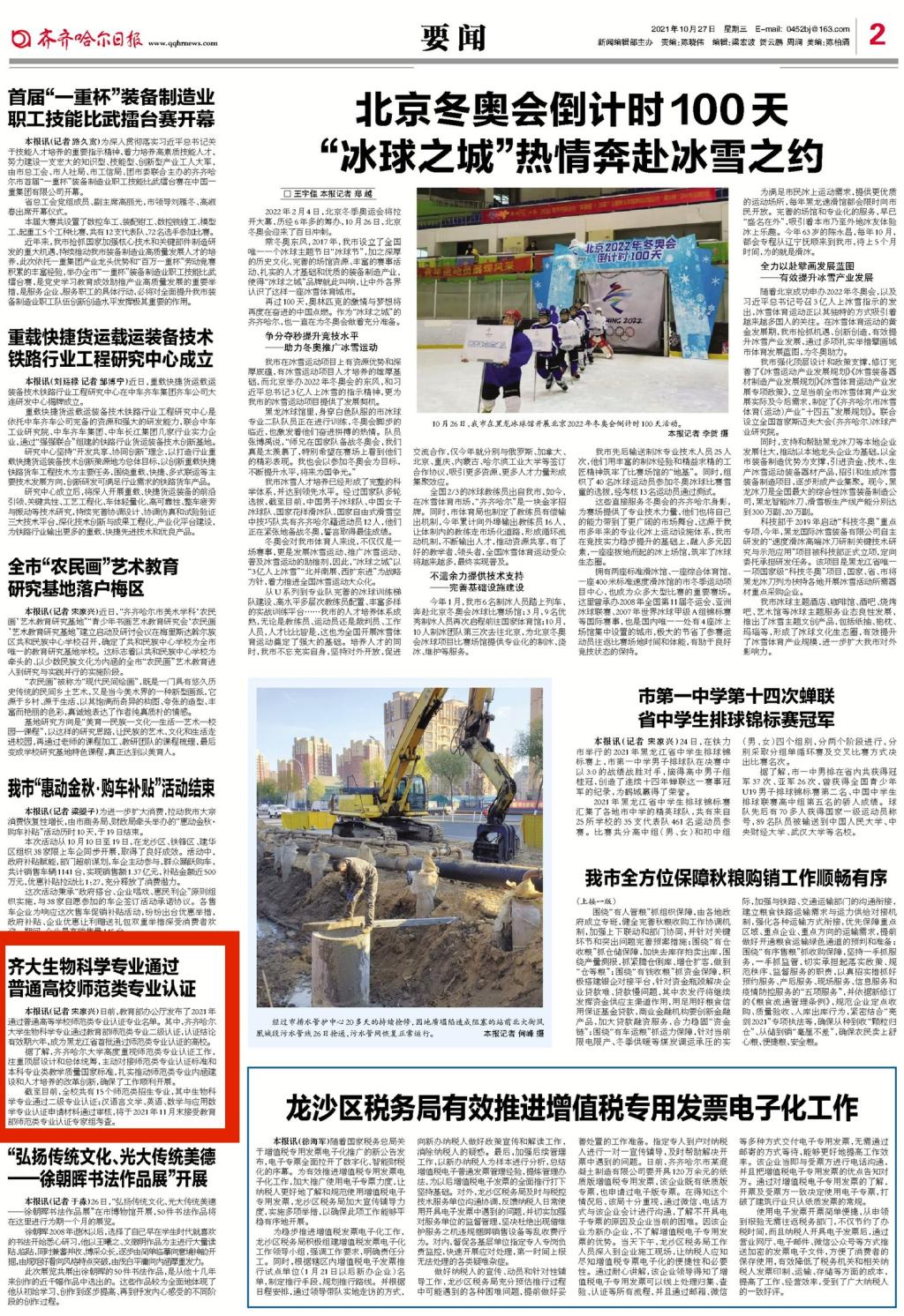 上一條:【齊齊哈爾新聞】齊大生物科學專業通過普通高等學校師范類專業認證