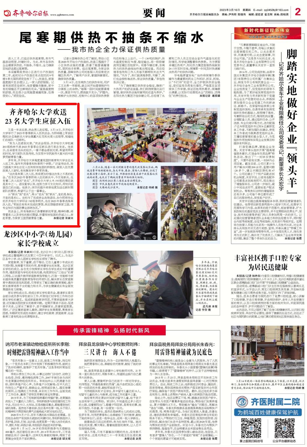 上一條:【鶴城晚報】送新兵 踏征程 齊齊哈爾大學歡送23名應征入伍準新兵大學生