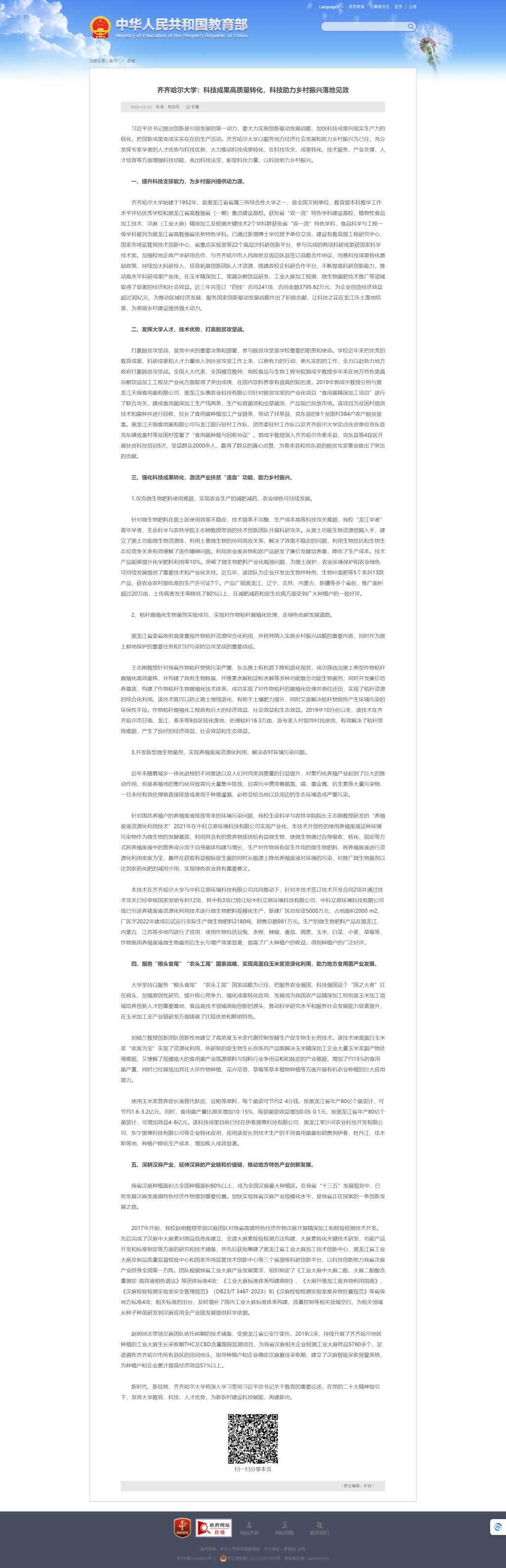 【中華人民共和國教育部】齊齊哈爾大學:科技成果高質量轉化,科技助力鄉村振興落地見效
