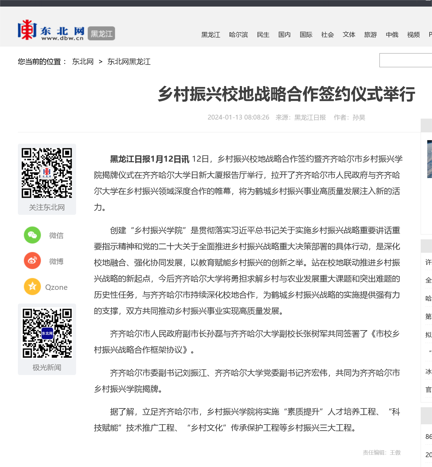 【東北網(wǎng)】鄉(xiāng)村振興校地戰(zhàn)略合作簽約儀式舉行