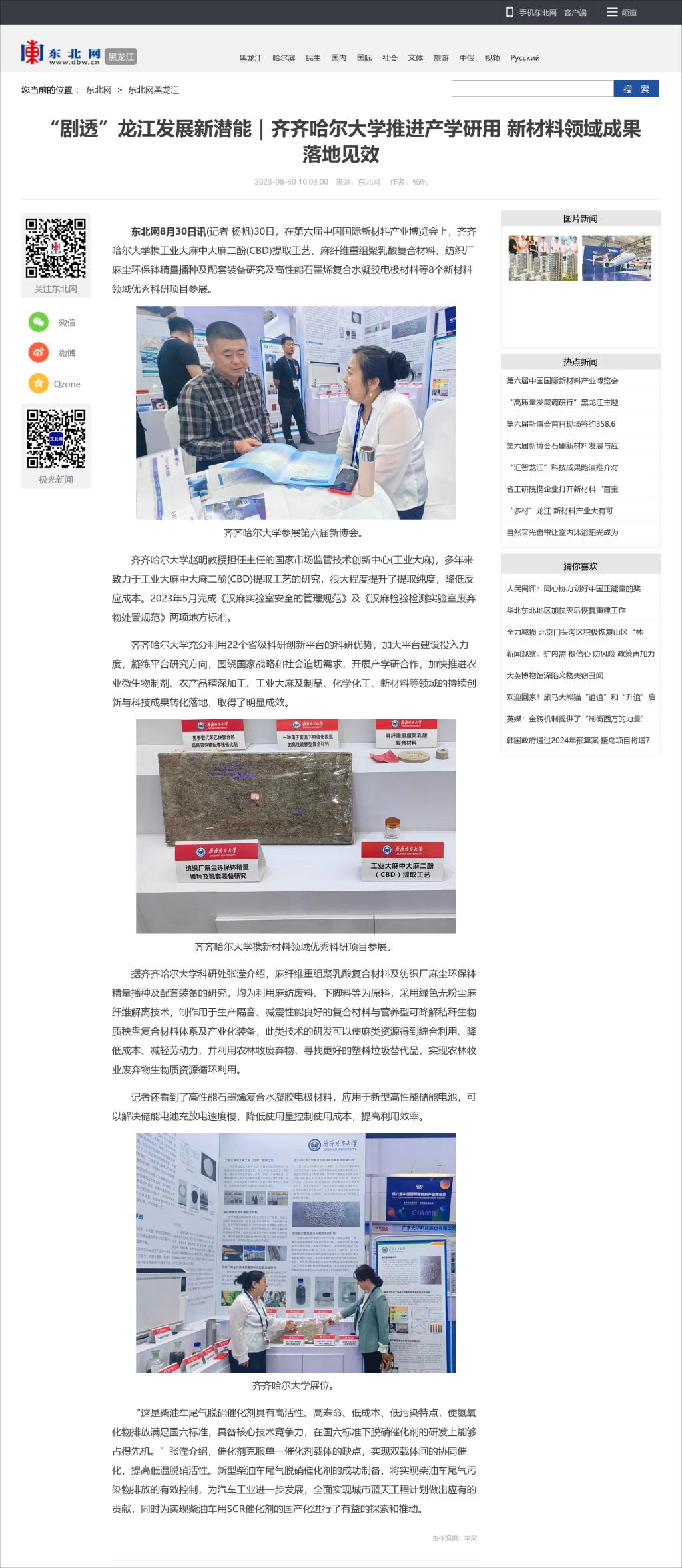 【東北網】“劇透”龍江發展新潛能|齊齊哈爾大學推進產學研用 新材料領域成果落地見效