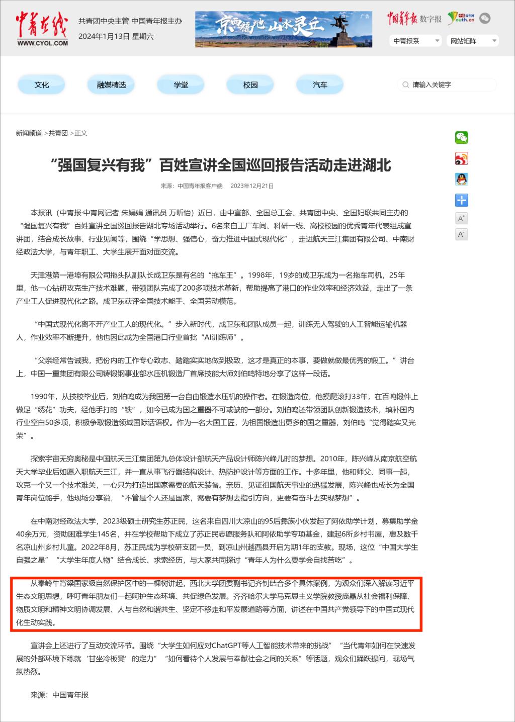上一條:【中青在線】“強國復興有我”百姓宣講全國巡回報告活動走進浙江