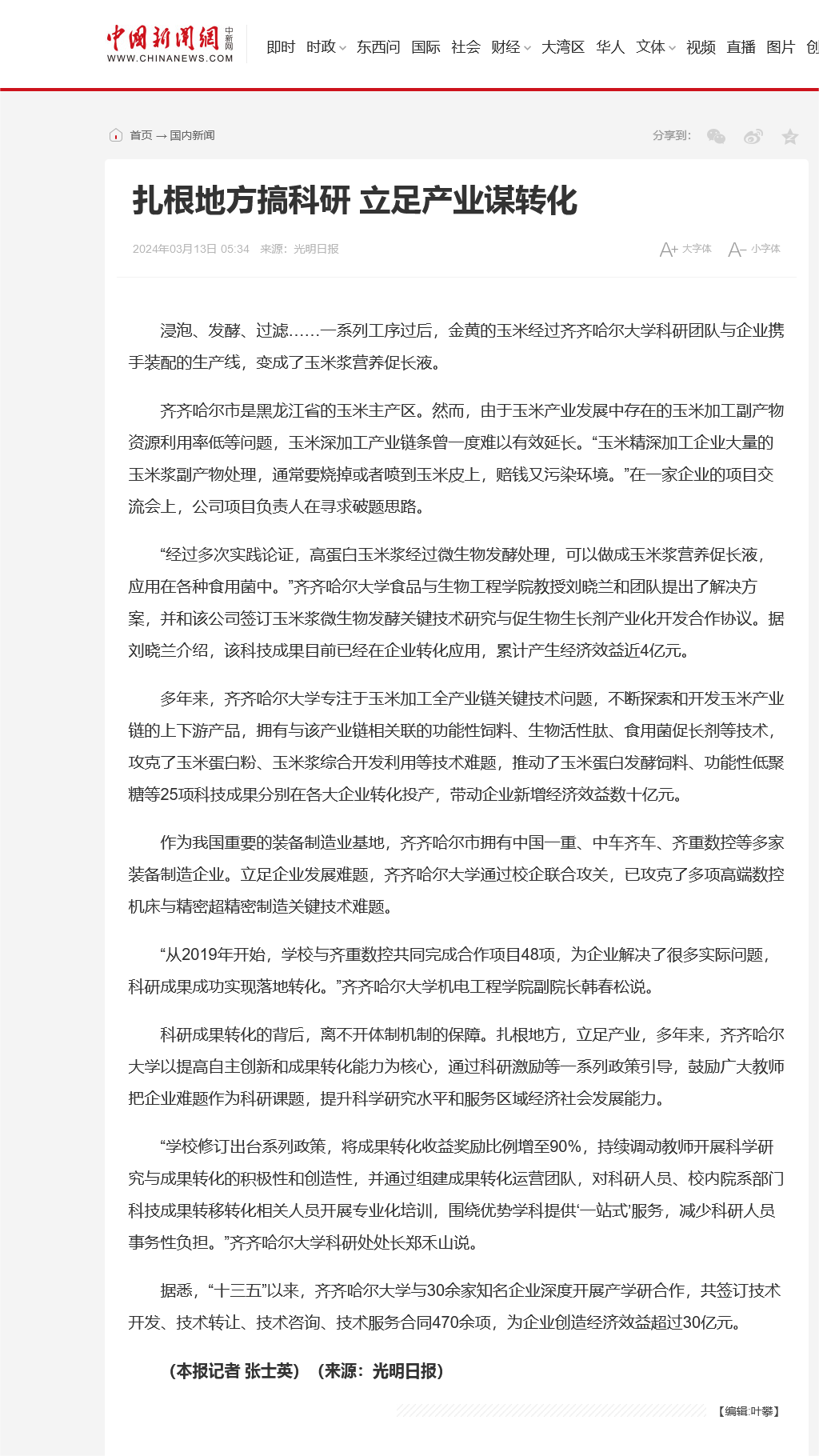 【中國(guó)新聞網(wǎng)】扎根地方搞科研 立足產(chǎn)業(yè)謀轉(zhuǎn)化