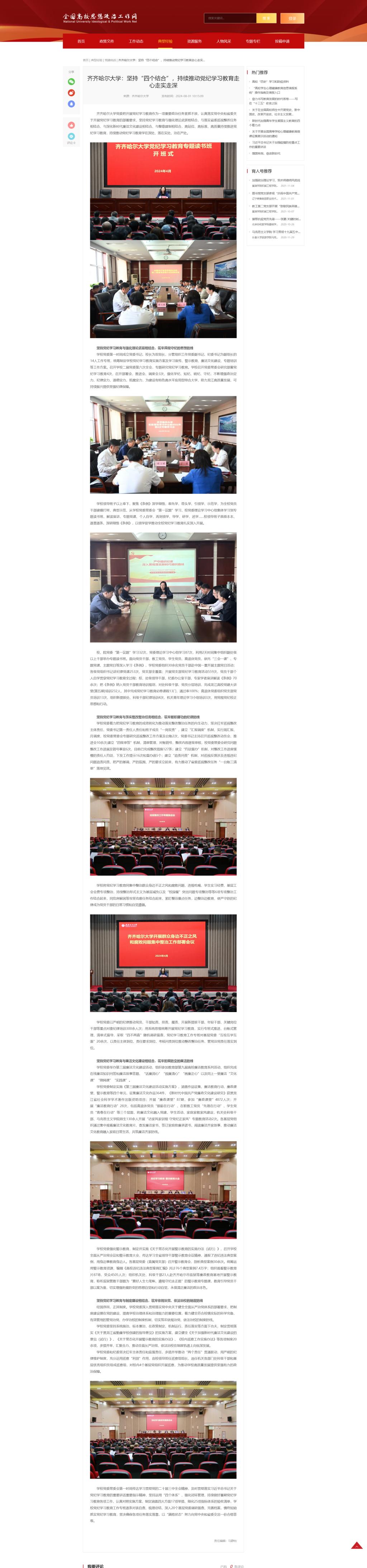 【全國高校思想政治工作網】齊齊哈爾大學:堅持“四個結合”,持續推動黨紀學習教育走心走實走深