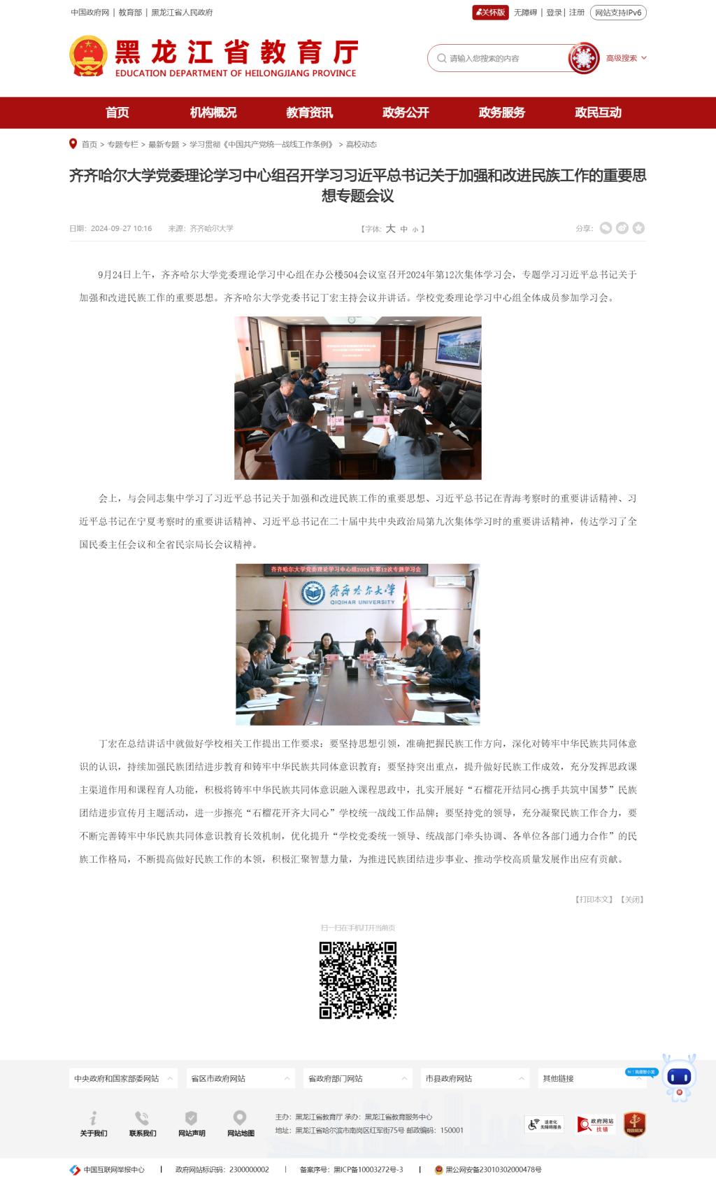 【黑龍江省教育廳】齊齊哈爾大學黨委理論學習中心組召開學習習近平總書記關于加強和改進民族工作的重要思想專題會議