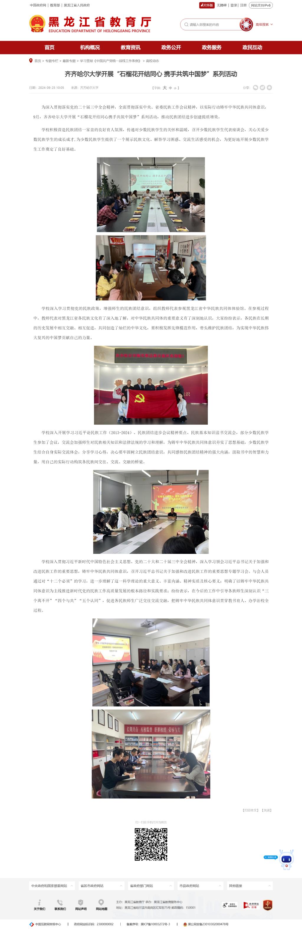 【黑龍江省教育廳】齊齊哈爾大學開展“石榴花開結同心 攜手共筑中國夢”系列活動