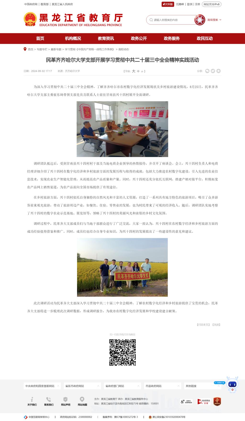 【黑龍江省教育廳】民革齊齊哈爾大學支部開展學習貫徹中共二十屆三中全會精神實踐活動