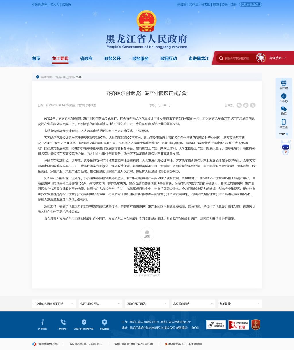 【黑龍江省人民政府】齊齊哈爾創意設計港產業園區正式啟動