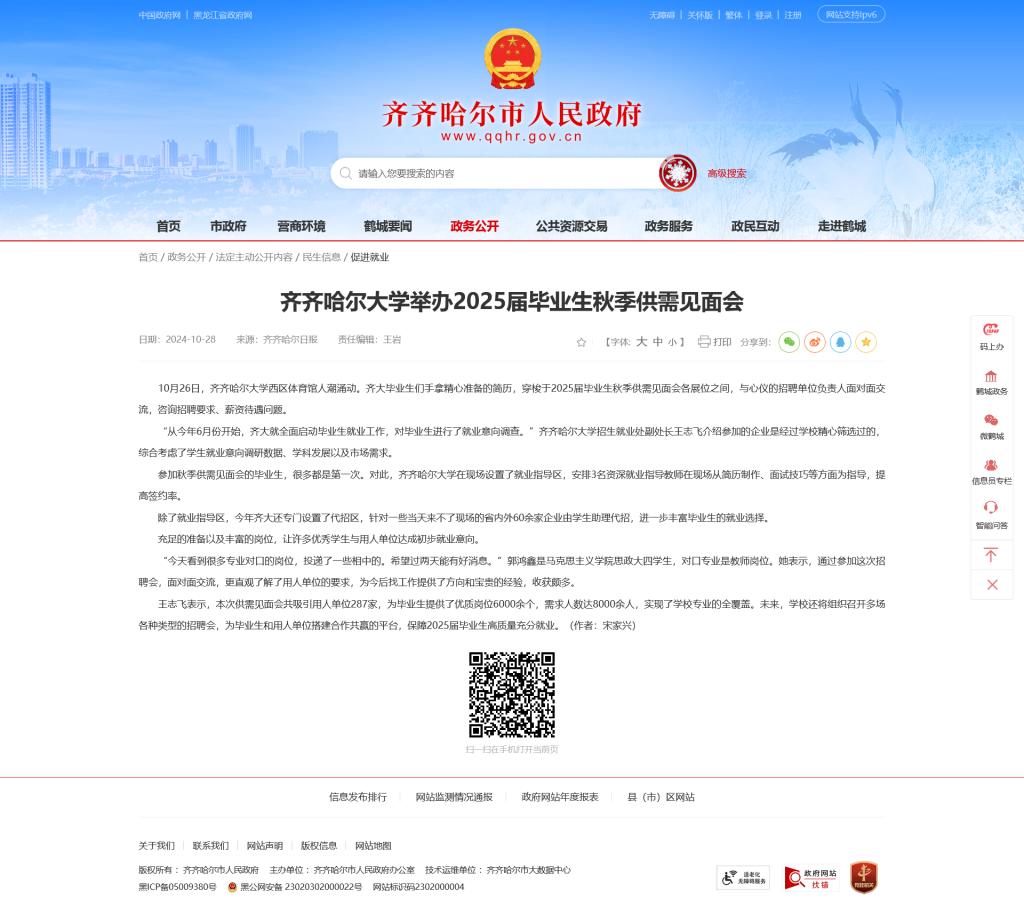 【齊齊哈爾日報】齊齊哈爾大學舉辦2025屆畢業生秋季供需見面會