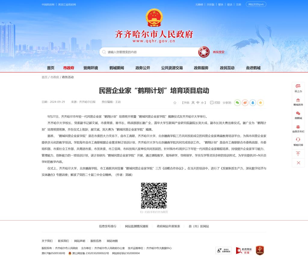 【齊齊哈爾日報】民營企業家“鶴翔計劃”培育項目啟動