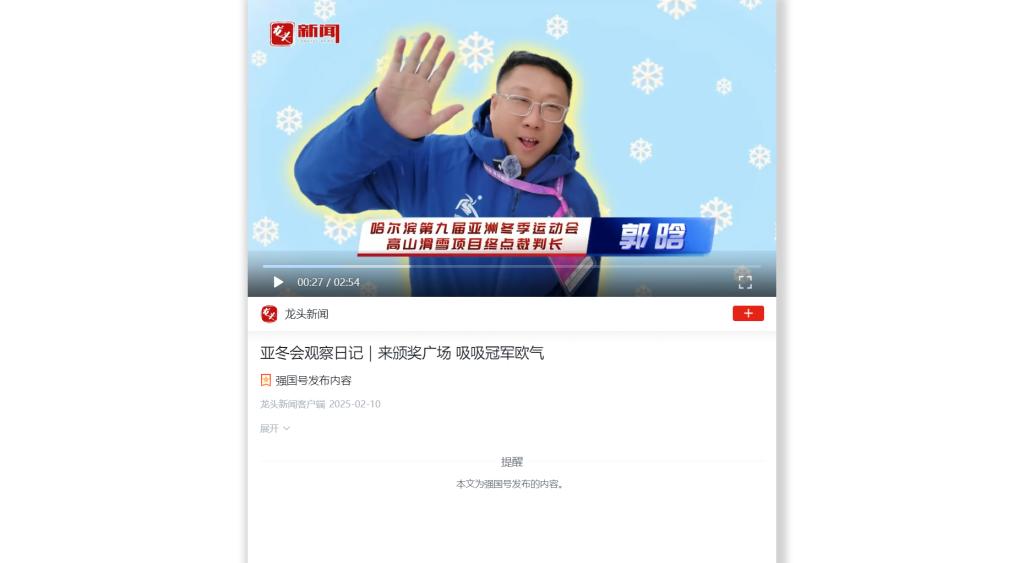 【學(xué)習(xí)強(qiáng)國】亞冬會(huì)觀察日記|來頒獎(jiǎng)廣場(chǎng) 吸吸冠軍歐氣