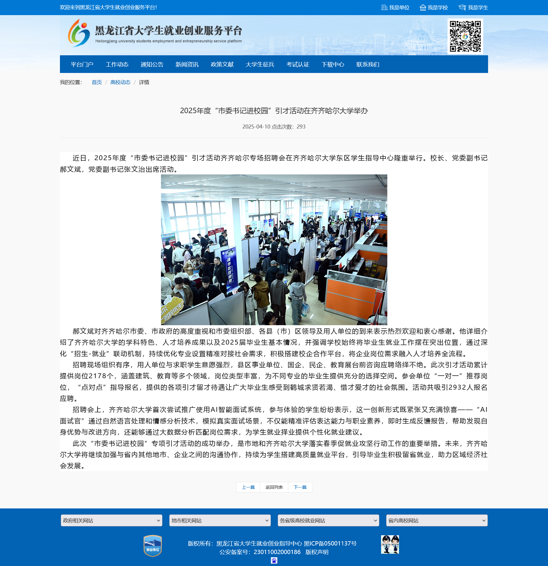 【黑龍江省大學生就業創業服務平臺】2025年度“市委書記進校園”引才活動在齊齊哈爾大學舉辦