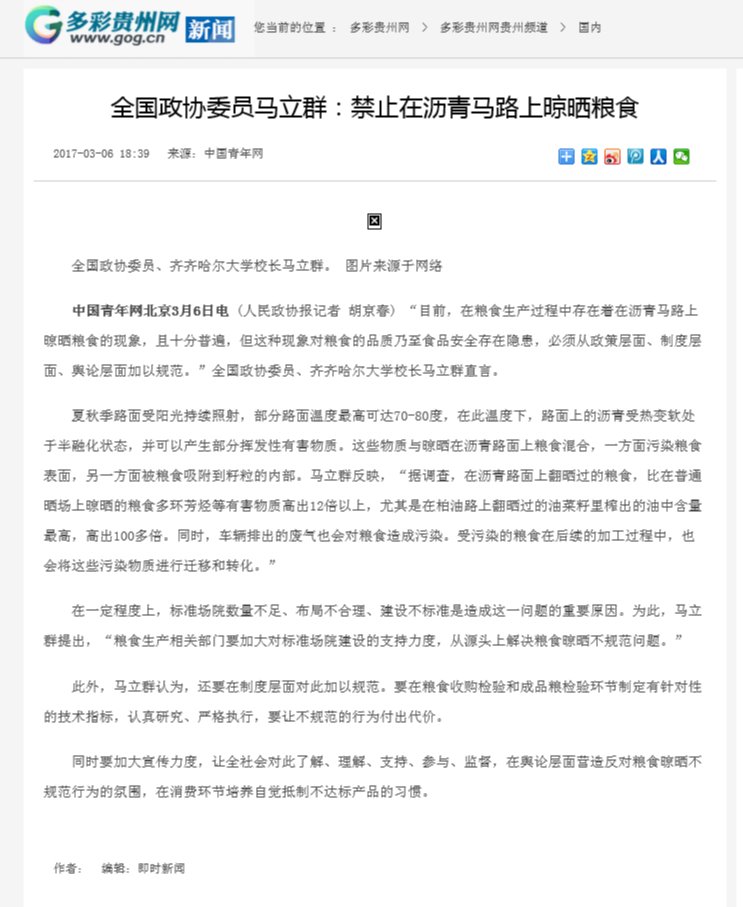下一條:【中國江蘇網】全國政協委員馬立群:禁止在瀝青馬路上晾曬糧食