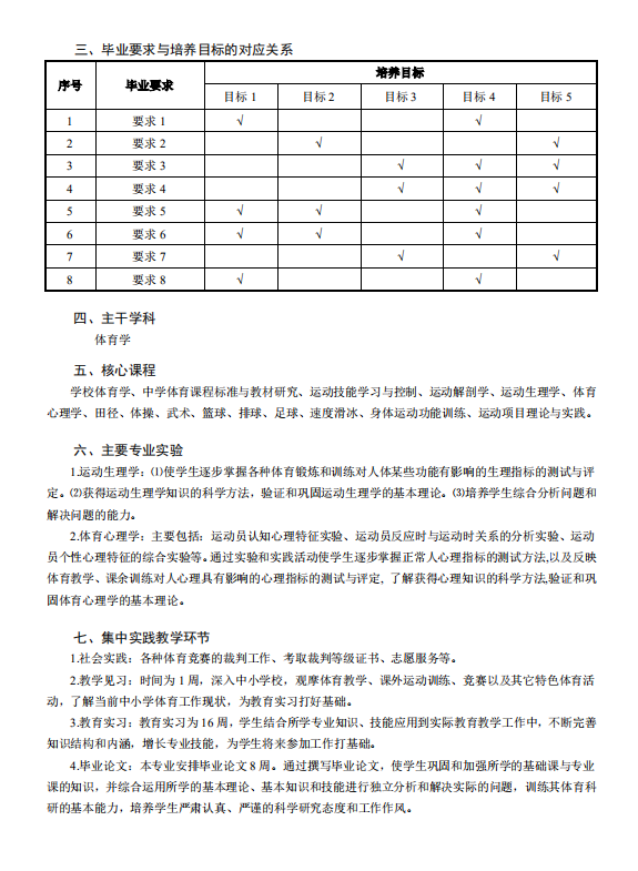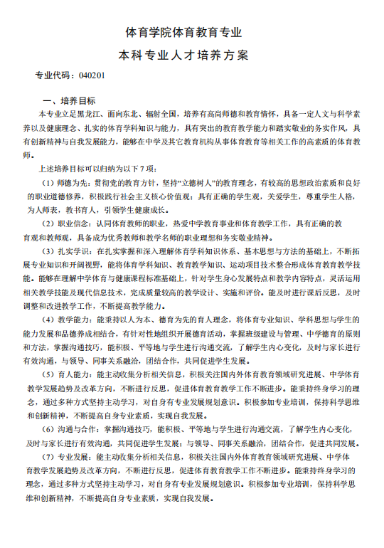 體育學院體育教育專業(師范類) 本科專業人才培養方案